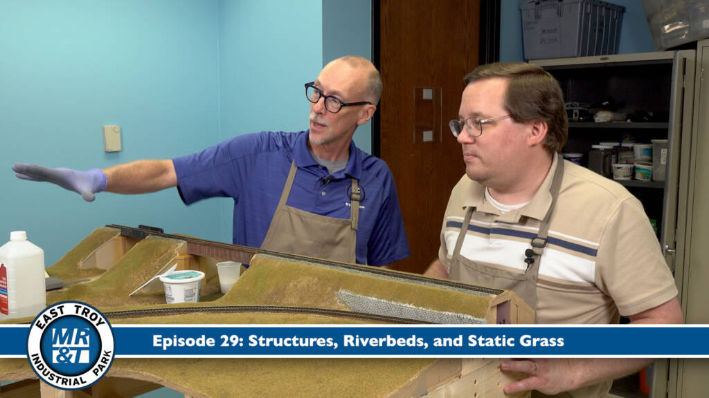 The guys focus on adding the depot platform and a farm field to theHO scale (1:87.1)East Troy Industrial project layout. David selects a diluted gray stain for the depot platform, and then demonstrates how to correct a scenery mistake. Cody works on the hayfield, sharing his intriguing technique for modeling windrows with yarn, and then […]