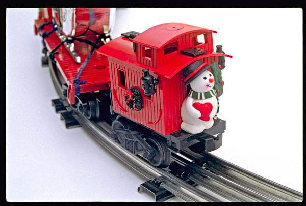 After cutting the wheels off the LGB caboose, I mounted the body on top of a postwar Lionel no. 479-1 basic truck with coupler. Finally, by removing the railing from the back of the caboose, I was able to fit a frosty, snowman ornament to the rear platform. The caboose just wouldn’t be complete without a memorable vision for the kids to see as the Santa Claus Special passes by.