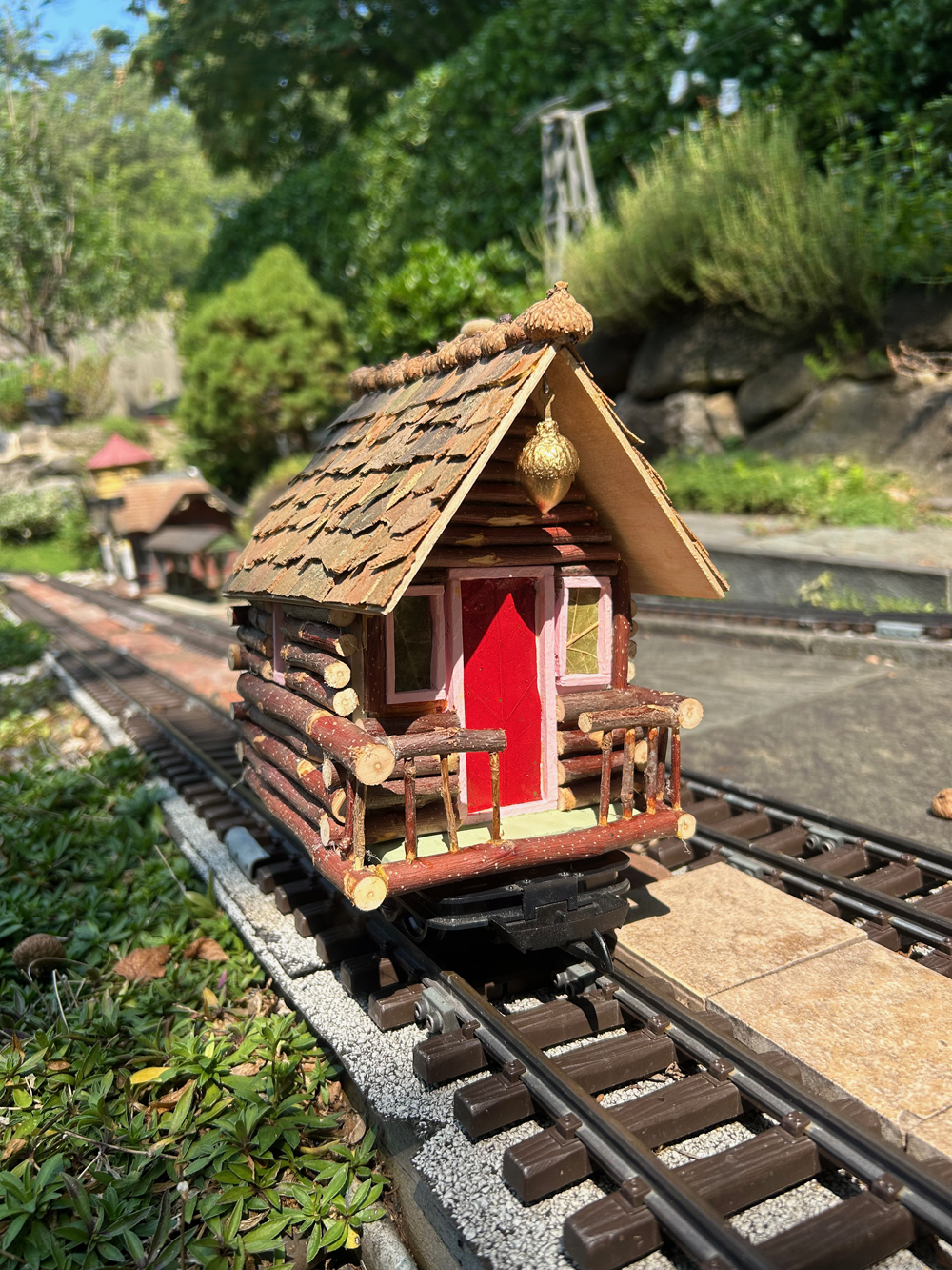 I thought I would combine the railway and fairy themes, and create a Fairy Walk Log Cabin Railroad Car.