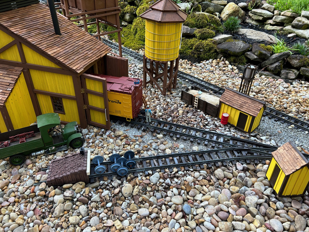 I model Colorado narrow gauge, specifically the Denver & Rio Grande Western and Rio Grande Southern. I own two separate garden railroads (not connected and about 8 feet apart). Trains run around approximately 250 feet of mainline tracks with a couple of short lines for logging and running the Galloping Goose. I can run five trains at one time, all on separate loops. I am a member of the Georgia Garden Railway Society and volunteer at the Tennessee Valley Railroad Museum.