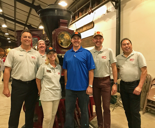 Approximately 175 people attended the event. In-N-Out Burgers and custom cupcakes with LGB’s 50th logo were served. OERM and Grizzly Flats provided a team of volunteers to help with the event. There were docent-led tours of the museum, trolley rides that ran continually, and a train that left on the hour taking passengers into town and back. LGB new products were on display including the new models of the Grizzly Flats Chloe locomotive and passenger cars. A digital presentation helped LGB modelers learn more about running trains digitally on their layouts, and a collection of historic LGB memorabilia was on display. There was also a variety of products for sale, including LGB 50th logo baseball hats, beer steins, coffee mugs and polo shirts.