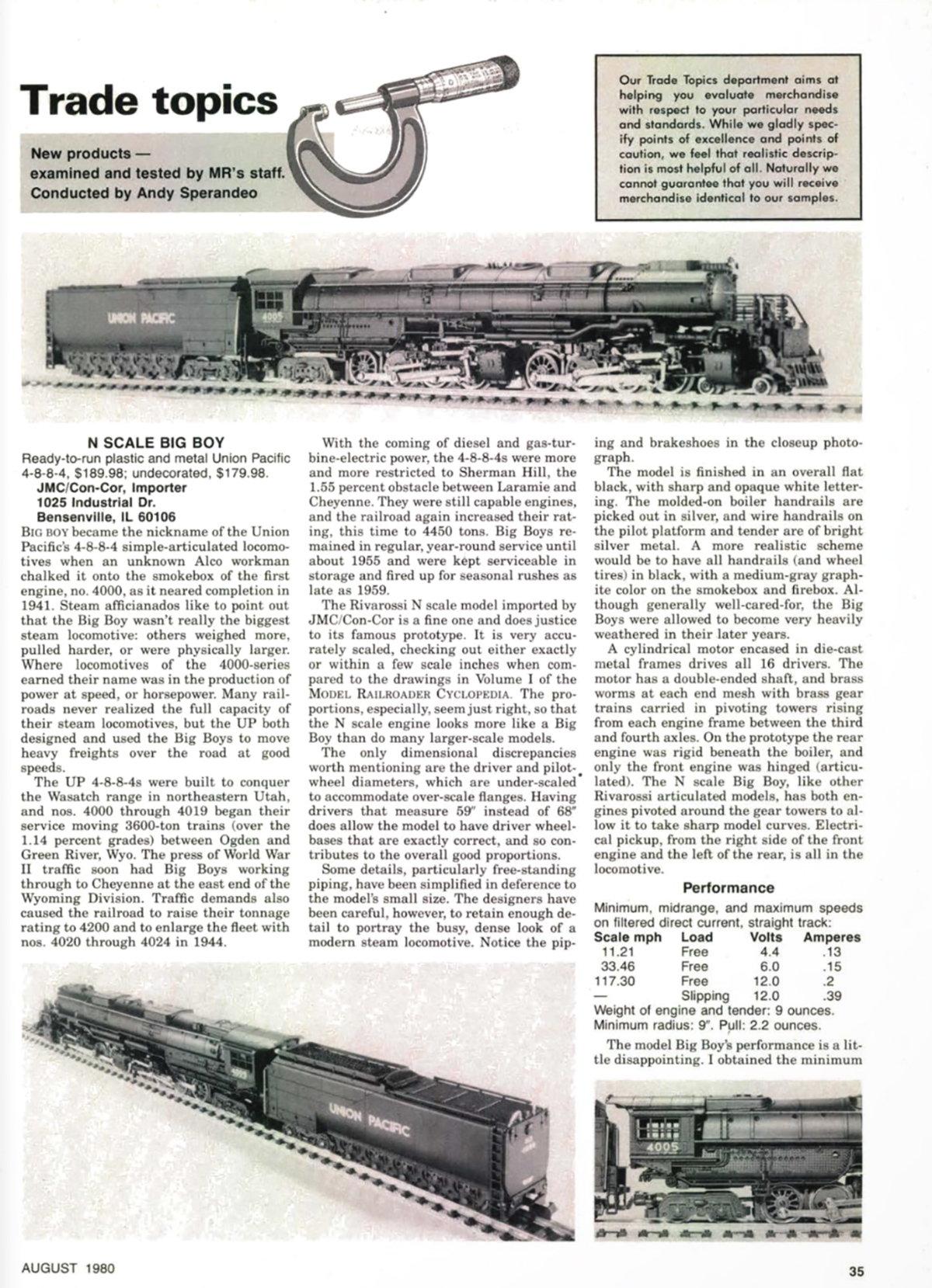 The MR staff reviewed the new model 4-8-8-4 in the April 1980 issue, pointing out its fine detail but poor running characteristics.