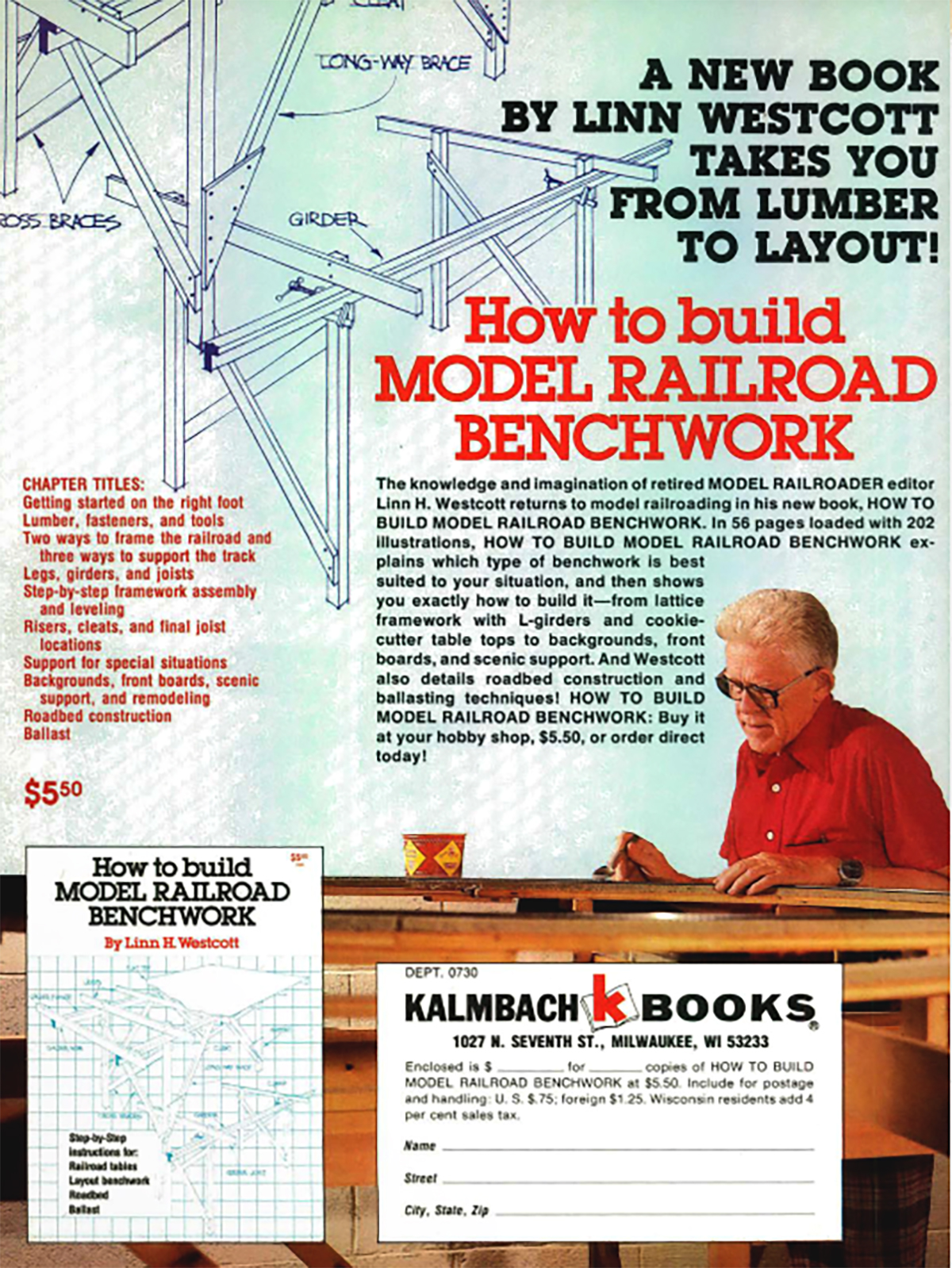 Many of former MR editor Linn Westcott’s concepts and techniques for building model railroad benchwork, as shown in this advertisement for his book, are still in use today.