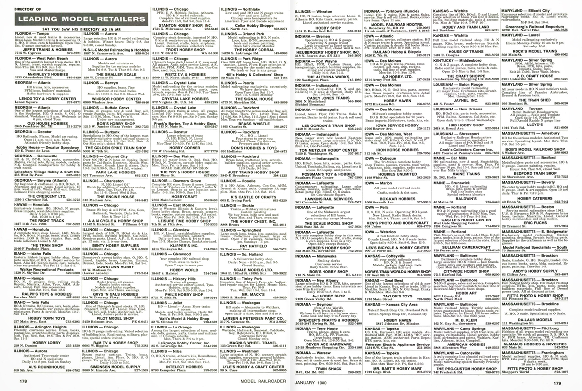 Long before the internet, MR’s directory of retailers with listings by state and town was the easiest way to find hobby shops in a given region.