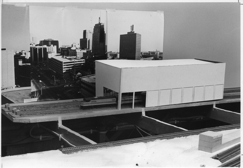 Plans called for a bridge across the end of the canal to hide its junction with the backdrop and a mirror under the bridge to make the canal look as though it continued into the distance. Erecting the backdrop left some complicated trackage on the far side of the canal inaccessible, so it had to come out. Any new track in that area would have to be very simple and 99.99 percent derailment-free. Also, club members wanted a passenger station for our Amtrak patrons. Beyond that, the sky (represented by blue-painted tempered hardboard) was the limit, just so that what we ended up with looked something like downtown Milwaukee.