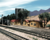 A Santa Fe steam locomotive and caboose are posed at Gary Hoover's HO Scale representation of "Summit", the top of the grade for the Santa Fe in California's Cajon Pass. A trolley car that was at Summit in the 1950s is easily seen in the background of this parched scene. This model railroad layout was featured in the October 2005 issue of Model Railroader. Photo by Gary Hoover.