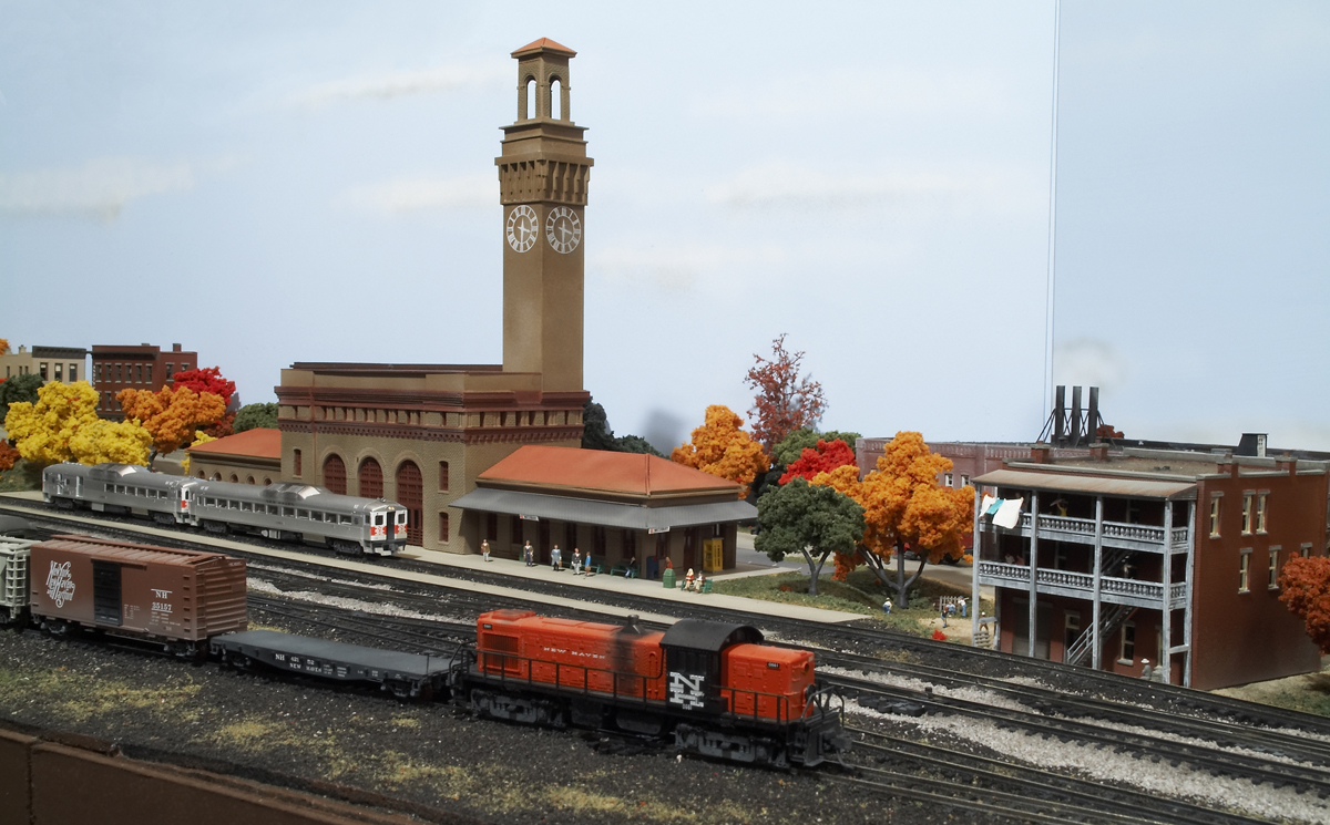 By this point in the session, the afternoon yard crew is on duty, sorting cars from the arriving turns to put together the Cedar Hill and Maybrook trains. These outbound trains depart in the early evening hours. Also, the RDCs make their final runs and then tie up for the night at the depot.