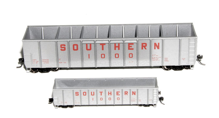Norfolk & Western class H2a three-bay open-top hopper. Atchsion, Topeka & Santa Fe; Baltimore & Ohio (three six-packs); Canadian Pacific; Chicago & North Western; CSX; Denver & Rio Grande; Great Northern; Illinois Central; New York Central; Norfolk Southern; Norfolk & Western (17- or 24-inch lettering, three six-packs per scheme); Pennsylvania RR (three six-packs); Union Pacific; and Wabash. Also available painted black but unlettered. Plastic construction with separately applied details, removable coal load, and detailed bay interiors. Six-pack (one per scheme unless noted), $139.99. Ready-to-run. Broadway Limited Imports, 386-673-8900, www.broadway-limited.com