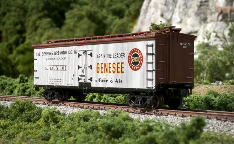 Fruit Growers Express 57-foot mechanical refrigerator car. Burlington Northern, FGE (block lettering), Santa Fe Leasing, Union Pacific Fruit Express, and Wisconsin Central. Etched-metal screens, wire brake rigging, and 100-ton roller bearing trucks with rotating bearing caps. $49.98; with sound, $79.98. Genesis series. Athearn Trains, 310-763-7140, www.athearn.com