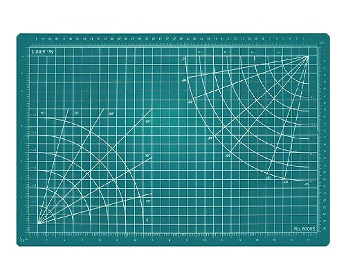 This self-healing cutting mat is the perfect safe surface for using cutting tools on any of your modeling parts or other projects. The grid is calibrated with one-inch patterns, as well as commonly used angles and arcs. Phthalate free and absorbs cuts from a hobby knife, it helps protect the surfaces around your work area to keep them cut free. Made from PVC.
