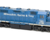 Milwaukee, Racine & Troy no. 902 is painted a bit different than the other GP40s, sporting a blue fuel tank and trucks. The model also received a rotary beacon, snow plow, and m.u. hoses. Bill Zuback photo