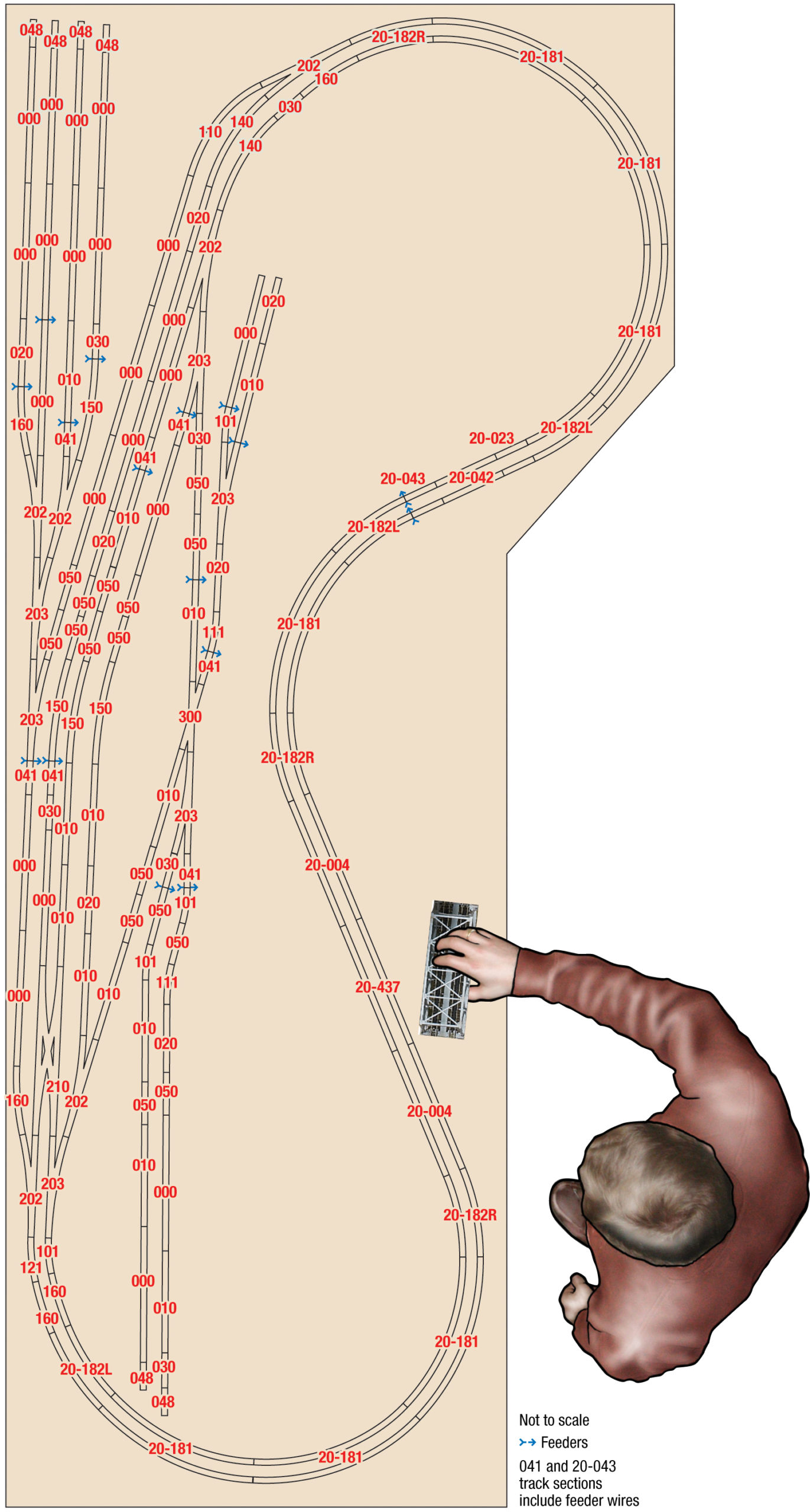 *Dick used seven of these short feeder sections as indicated on the track plan. In seven other instances, he used Kato factory-wired terminal joiners as feeders. The other two feeders were in section 20-043 from the V11 track set.