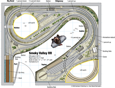 Name: Bay Junction (Milwaukee, Racine & Troy) Layout designers: The MR staff Scale: HO (1:87.1) Size: 6′-8″ x 26′-0″ Theme: freelanced junction town Locale: southern Wisconsin Era: 1990s Style: walkaround Mainline run: 42 feet Minimum radius: 30″ (except as noted) Minimum turnout: no. 6 Maximum grade: 3 percent Originally appeared in the January 2011 issue […]