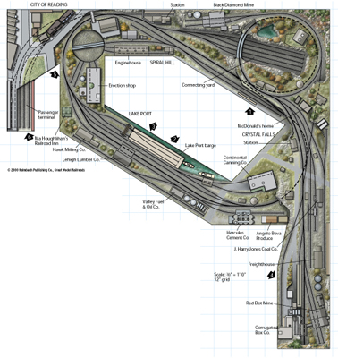 Track plan at a glance Name: Schuylkill Iron Works Scale: HO (1:87.1) Size: 4 x 21 feet Theme: Freelanced heavy industry Era: Late 1920s Style: island Mainline run: 50 feet Minimum radius: 15″ Minimum turnout: no. 4 Maximum grade: none Originally appeared in the March 2008 issue of Model Railroader. Also appeared in 102 Realistic […]