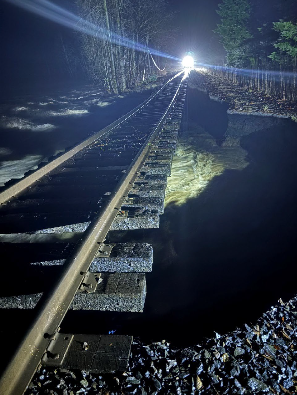 BNSF Railway crews worked over the weekend to repair flood-damaged sections of the railroad in Washington state, which was hit by record rainfall last week. Some areas of western Washington and Oregon received 10 to 17 inches of rain, which is more than some locations receive in a month, BNSF said in a customer advisory last week. The flooding also disrupted Amtrak operations in the area [see “Washington flooding spurs …,” Trains.com, Dec. 11, 2025], but those services have resumed.
