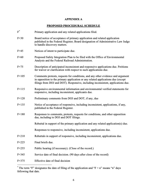 The railroads propose condensing comment and rebuttal periods. They also want the board to set firm dates for public hearings and the close of the record, the timing of a final decision, and its effective date.