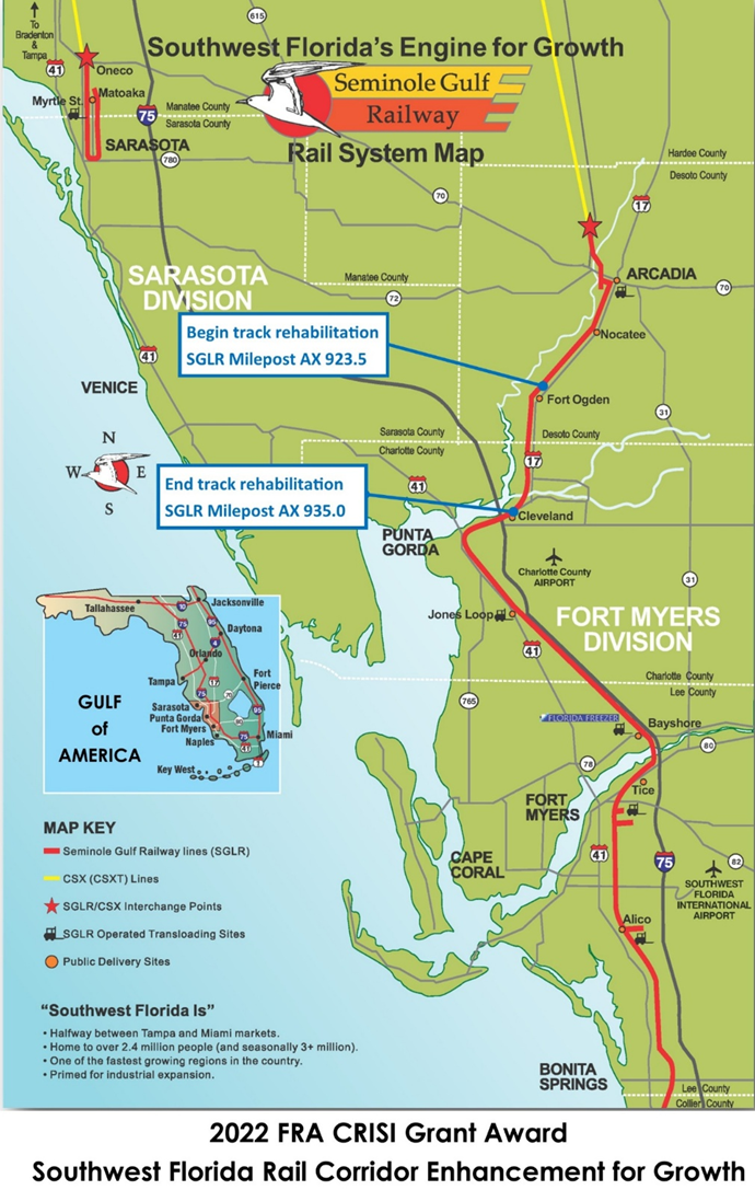 Funding for the 18-month project includes a $9.6 million federal Consolidated Rail Infrastructure and Safety Improvements (CRISI) Program grant and $4.3 million from the Florida Department of Transportation. The railroad is funding the remaining $18.2 million cost of the project.