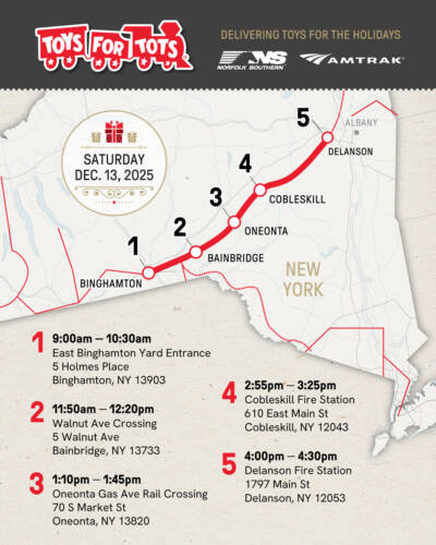 Norfolk Southern and Amtrak team up with Toys for Tots for holiday train in New York