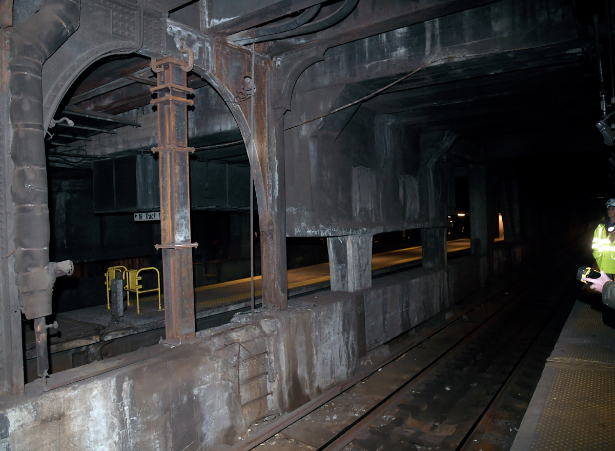 The train shed is where trains entering the terminal from the Park Avenue Viaduct are sorted to their destination at one of Grand Central’s platforms; 98% of Metro-North Railroad trains pass through the train shed on a daily basis. The work will include rebuilding the supports and waterproofing the roof of the trainshed.