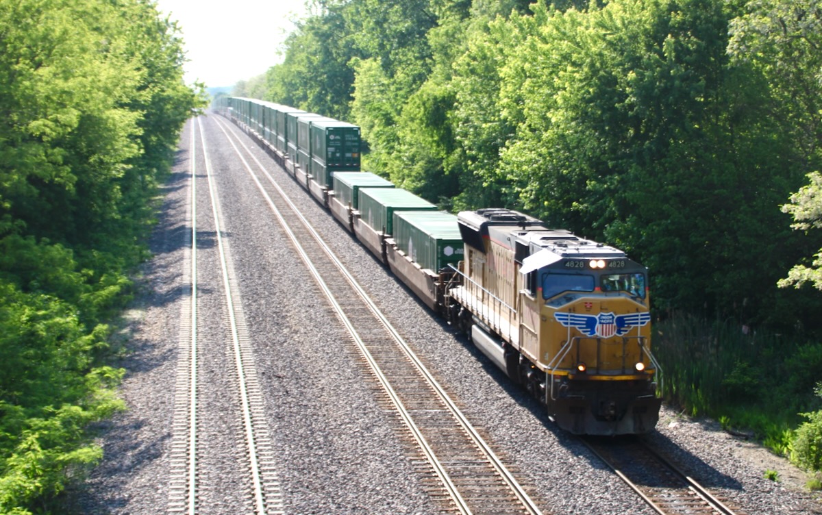 SD70M No. 4828 leads an eastbound Union Pacific intermodal train at La Fox, Ill., on May 31, 2026. More than 40 Republican members of the House of Representatives have weighed in with the Surface Transportation Board on the UP-Norfolk Southern merger. David Lassen
