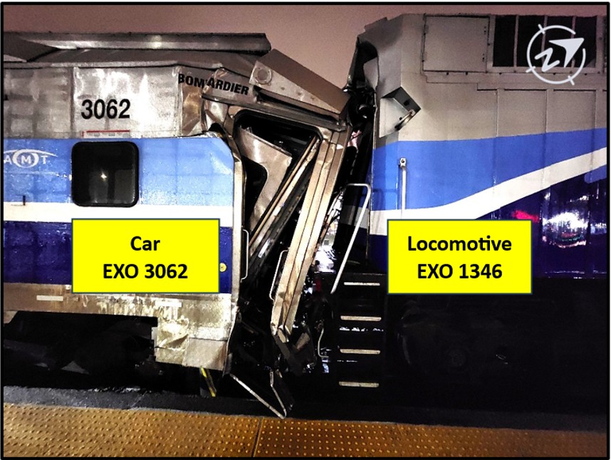 The CN locomotives were moving at 32 mph when they struck the commuter train, injuring four passengers and two of the Exo train’s crew members. The CN crew was not hurt.