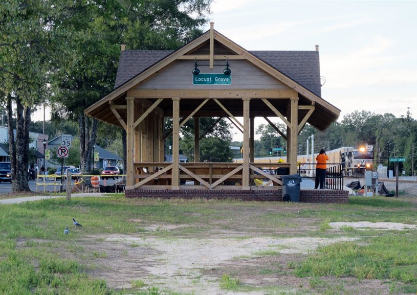 A local resident donated materials for the platform, and labor to build it was provided by the Georgia Department of Corrections. Additional funds for building it came from a local hotel tax. The city also built additional parking adjacent to the platform and a new crosswalk connecting it to local businesses. The platform is intended to aid in the growth of Locust Grove as a destination for visitors, inspired by similar train watching sites in other places like Folkston in southeast Georgia and others throughout the Midwest.